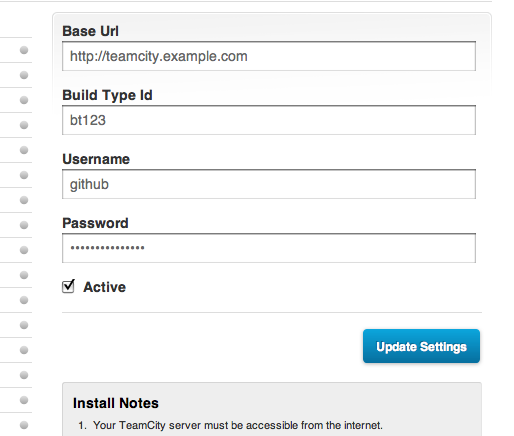 Looking at GitHub's service hooks, there wasn't one already available to callback a TeamCity server, but right on that same page was a link to the open source repository for GitHub Service Hooks. They "eat their own dogfood" so to speak and make it very easy to contribute new service hooks back to them. So I took an evening, did my first Ruby coding in a while which included more time getting Ruby setup and working on my Macbook than actually coding. In a few hours I had committed a TeamCity service hook to my fork of the project and requested them to pull the changes from my fork.